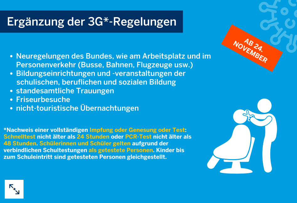 Das Land NRW hat verschärfte Regeln eingeführt. Die Verordnungen gelten vorläufig bis zum 21.12.2021.